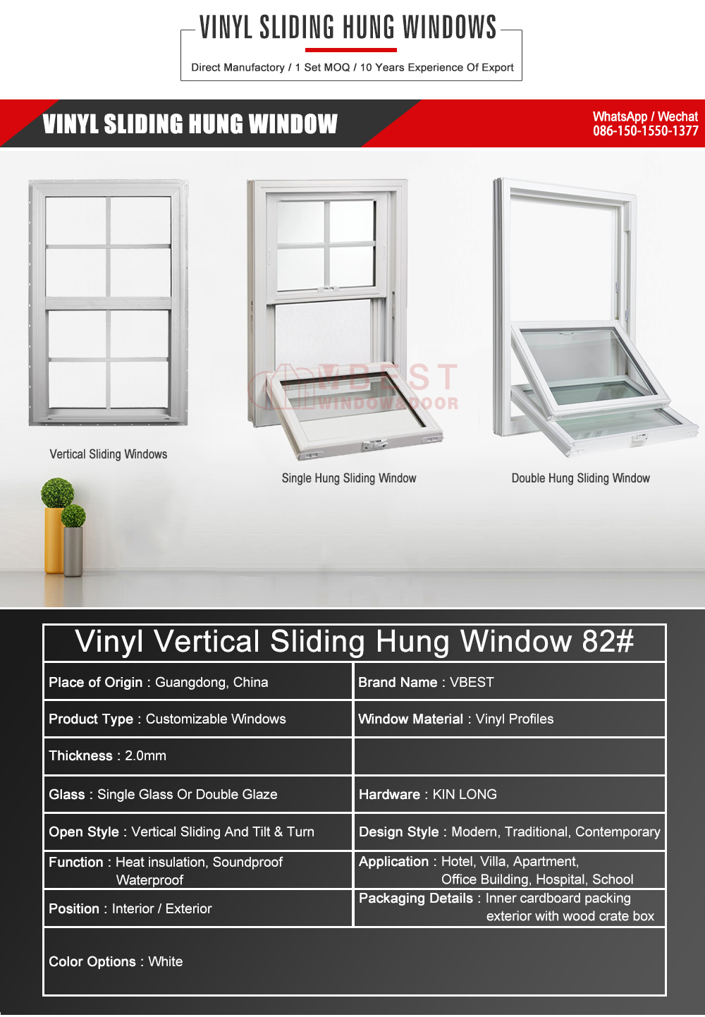 VBEST Vinyl Sliding Hung Window 82# Is A Vinyl Window Type Popular In North America, Which Has Excellent Sound Insulation And Thermal Insulation Performance. It Can Be Opened In A Single Or Double Way, Or It Can Be Designed To Open Upside Down, Or It Can Be Designed To Open Horizontally.